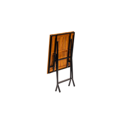 La estructura de acero con pintura en polvo garantiza estabilidad y resistencia al uso intensivo, mientras que la encimera de madera aporta un aspecto natural y atemporal. Su diseño plegable facilita el almacenamiento y la rápida preparación del espacio, ideal para locales de temporada y lugares donde se requiere flexibilidad.