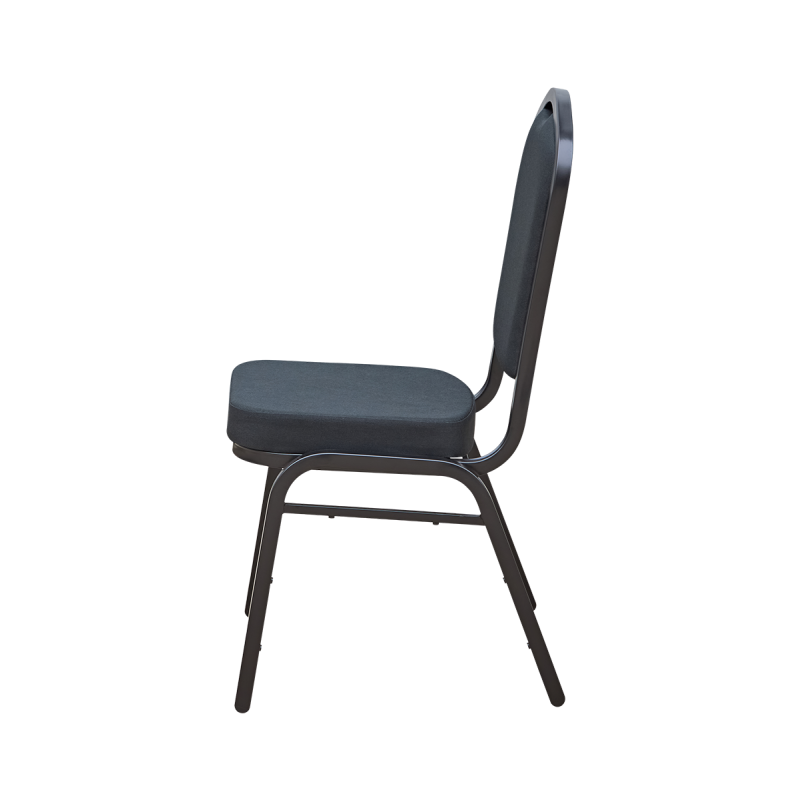 El asiento de 5,5 cm de grosor garantiza confort incluso durante eventos prolongados. La espuma de poliuretano utilizada evita deformaciones, conservando su forma original a lo largo del tiempo. La tapicería negra es suave, agradable al tacto y fácil de limpiar, lo que la convierte en una elección ideal para espacios donde la estética y la higiene son clave.