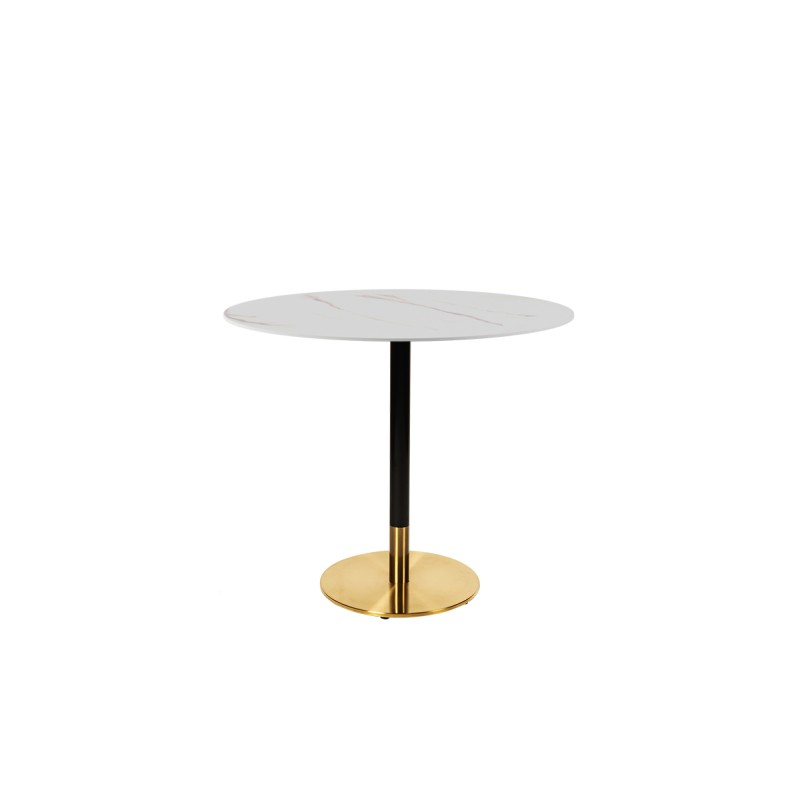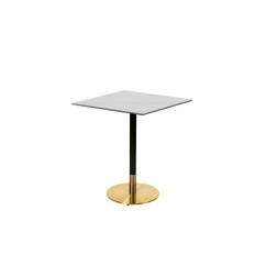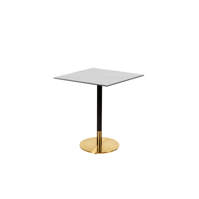 La mesa Omega R presenta una columna redonda de 5 cm de diámetro y una base redonda de 40 cm, lo que le da un aspecto más ligero y orgánico. Gracias a su acabado cromado y a su robusto núcleo de hierro fundido, combina estética y durabilidad, características esenciales para espacios gastronómicos dinámicos.