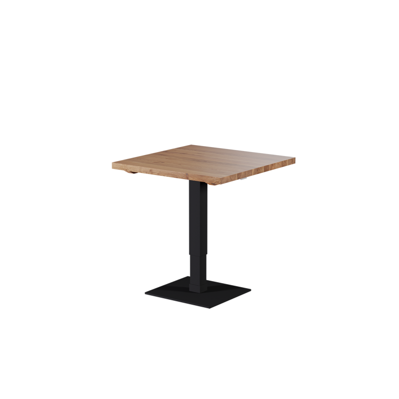La mesa de madera ADAPTIVE es una propuesta ideal para locales que buscan comodidad, elegancia y máxima funcionalidad. Su forma limpia y moderna funciona perfectamente en cafeterías luminosas, restaurantes y espacios orientados al servicio rápido y cómodo. El tablero de madera maciza de roble de 38 mm aporta un carácter natural y resalta la alta calidad del mueble. La altura regulable permite adaptar la mesa a diferentes configuraciones – desde mesas bajas clásicas hasta zonas elevadas de tipo bar.
