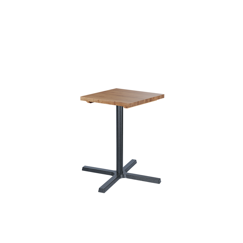 Este modelo funciona tanto como mesa de cafetería como mesa de café en zonas de carácter más relajado. Combinada con sillas metálicas, tapizadas o de madera, crea conjuntos con un carácter variado, desde elegantes hasta más informales.