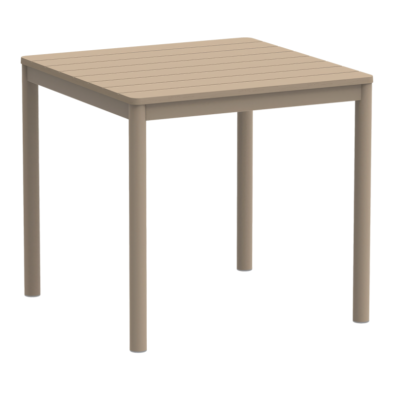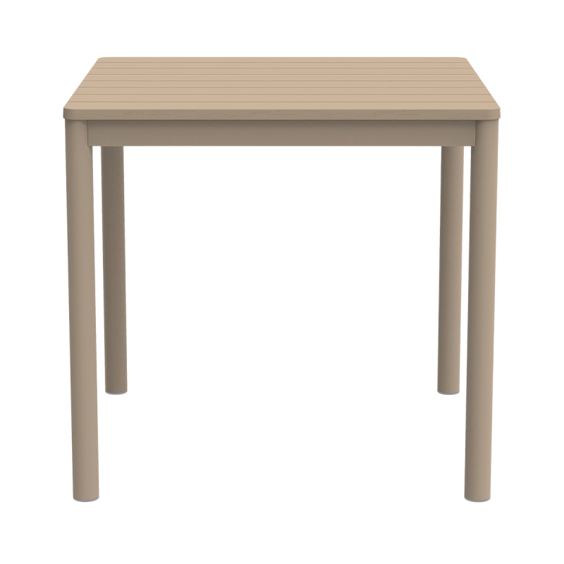Su forma geométrica definida y el tablero con un sutil fresado le otorgan a este modelo un carácter más refinado. La TERRAZZA 80x80 no es una mesa de jardín anónima: sus proporciones ordenan el espacio y le aportan ritmo. Las cuatro patas estables y la coloración uniforme crean un conjunto coherente y moderno. Es una mesa para terrazas cerveceras que luce igual de bien en entornos urbanos compactos como en patios abiertos, e incluso como mesa de piscina.