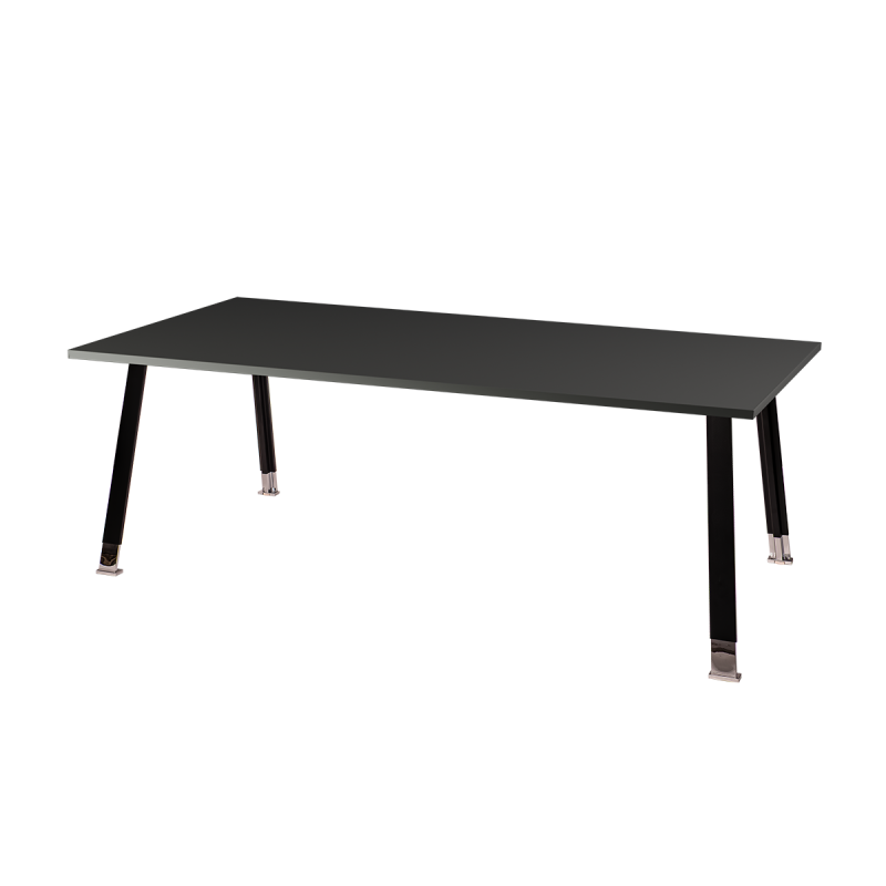 Este modelo está disponible en dos tamaños. La versión de 200x100 cm es ideal para espacios más pequeños, ofreciendo plena comodidad de trabajo, mientras que la versión de 240x120 cm proporciona un espacio adicional para reuniones con varios participantes y presentaciones. La variedad de colores del tablero facilita adaptar la mesa al estilo del interior.
