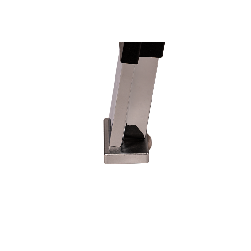 Para mayor comodidad, la mesa está equipada con patas niveladoras con ajuste hasta 15 mm, lo que permite un perfecto nivelado incluso en suelos irregulares. Esta solución garantiza comodidad de uso y seguridad durante el trabajo, presentaciones y reuniones de negocios, independientemente de las condiciones del espacio.
