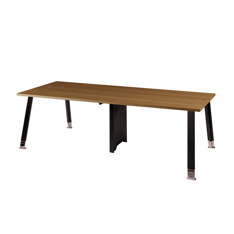 Este modelo está disponible en dos tamaños. La versión de 200x100 cm es ideal para espacios más pequeños, ofreciendo plena comodidad de trabajo, mientras que la versión de 240x120 cm proporciona un espacio adicional para reuniones con varios participantes y presentaciones. La variedad de colores del tablero facilita adaptar la mesa al estilo del interior.