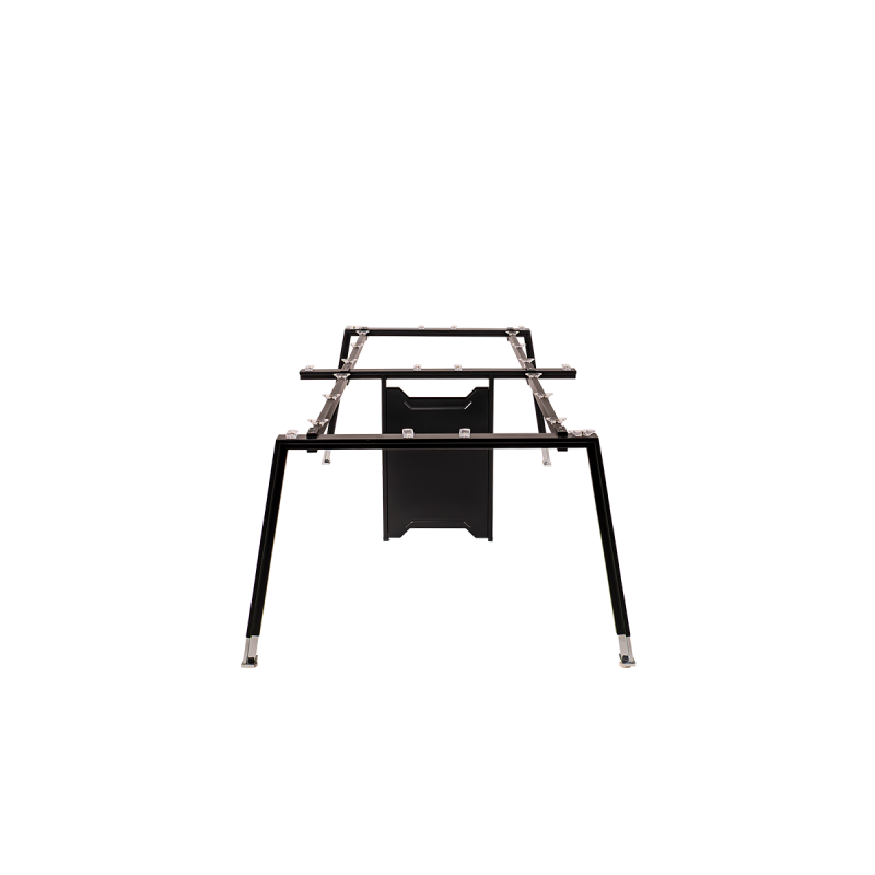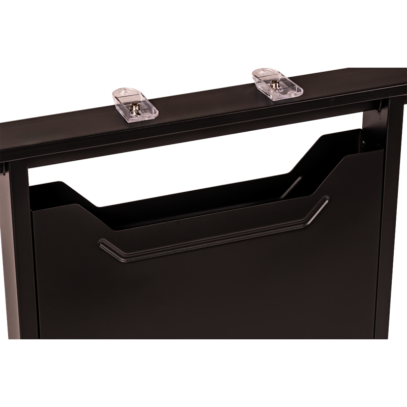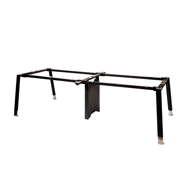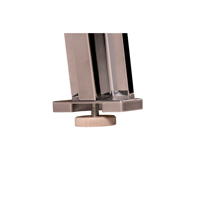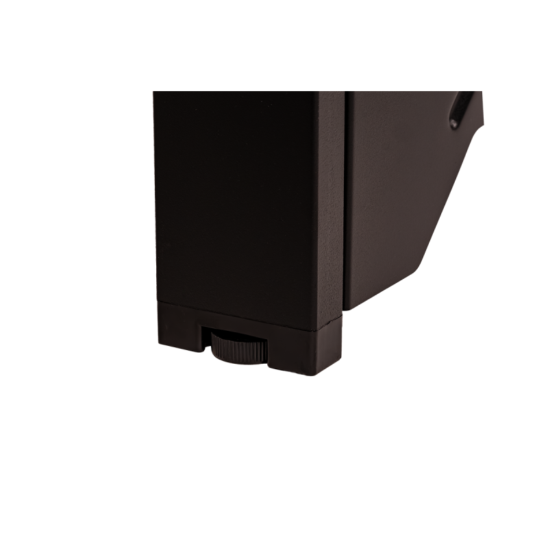 Para mayor comodidad, la mesa está equipada con patas niveladoras con ajuste hasta 15 mm, lo que permite un perfecto nivelado incluso en suelos irregulares. Esta solución garantiza comodidad de uso y seguridad durante el trabajo, presentaciones y reuniones de negocios, independientemente de las condiciones del espacio.