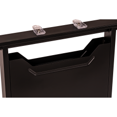 El tablero de la mesa de conferencia Connect está fabricado con un panel de 28 mm de grosor, laminado por ambas caras, lo que garantiza una apariencia estética y una alta resistencia al uso intensivo. Su superficie lisa es agradable al tacto y no engancha la ropa. Nuestro laminado protege eficazmente contra arañazos, humedad y altas temperaturas, por lo que la mesa conserva un aspecto impecable incluso tras muchos años de uso.