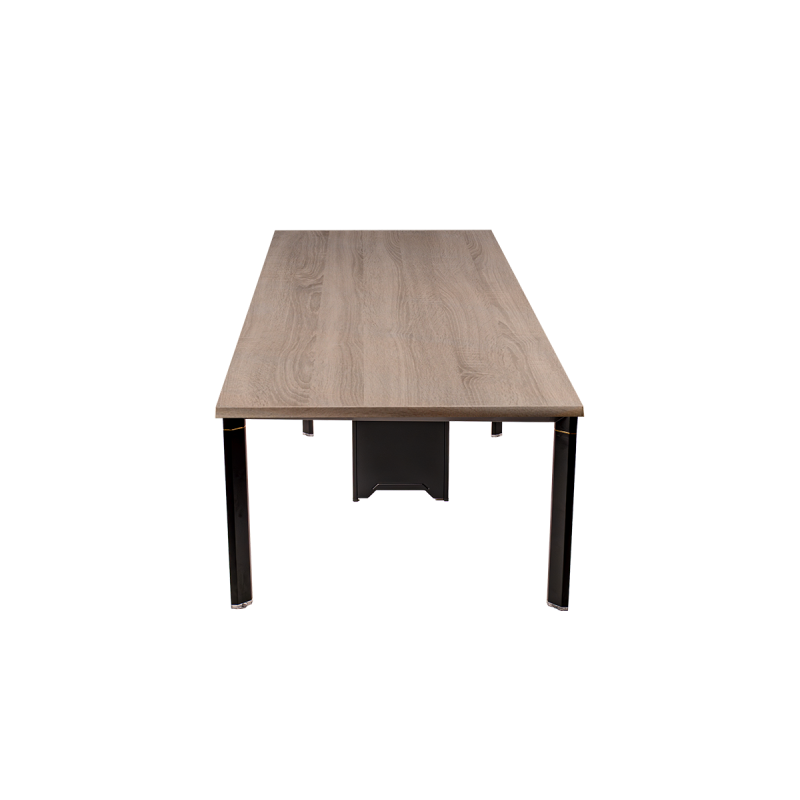 La versión de 200x100 cm es ideal para salas más pequeñas, mientras que la de 240x120 cm es perfecta para reuniones de mayor tamaño, ofreciendo un amplio espacio para el trabajo en equipo. La amplia gama de acabados en madera permite adaptar la mesa a cualquier estilo interior, desde clásico hasta moderno.