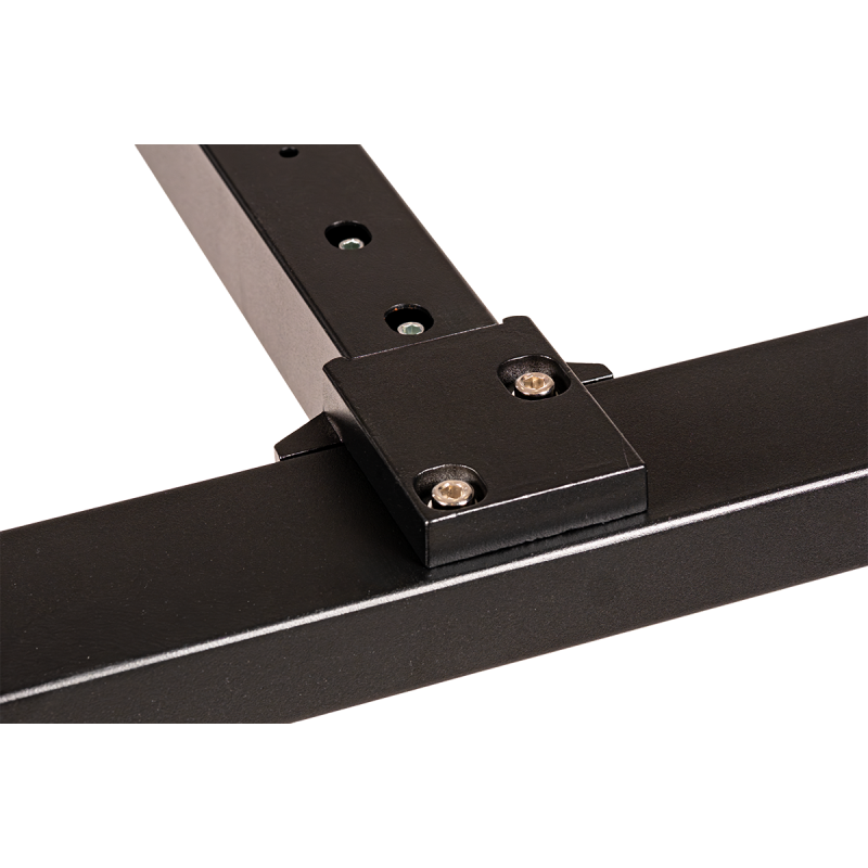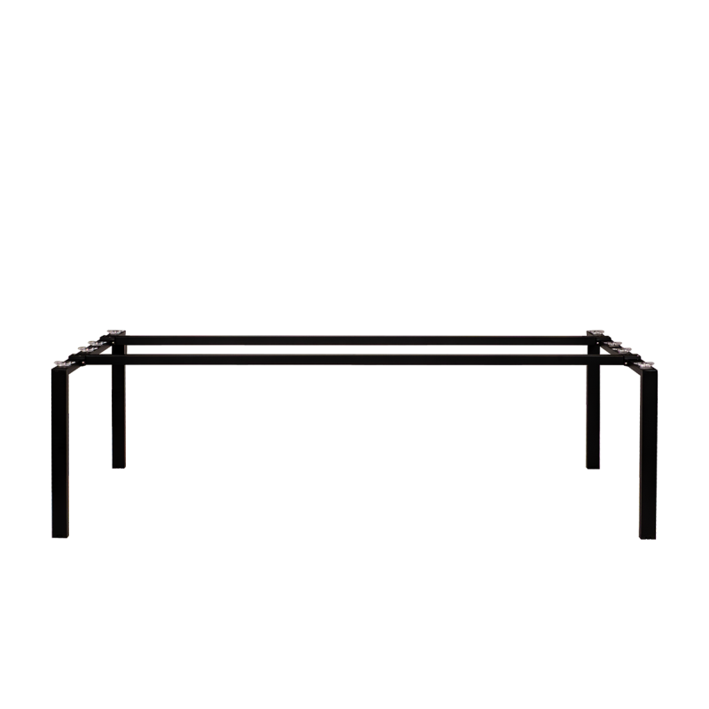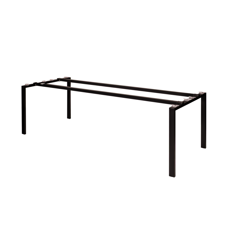 La base de la mesa de conferencia Modus está fabricada con perfiles de acero de forma simple y geométrica. Esta construcción garantiza estabilidad a lo largo de toda la superficie del tablero, lo cual es clave durante reuniones, presentaciones y trabajo en equipo. Las patas están situadas en las esquinas, proporcionando total libertad para colocar las sillas y ofreciendo un espacio cómodo para las piernas.
