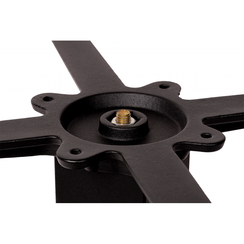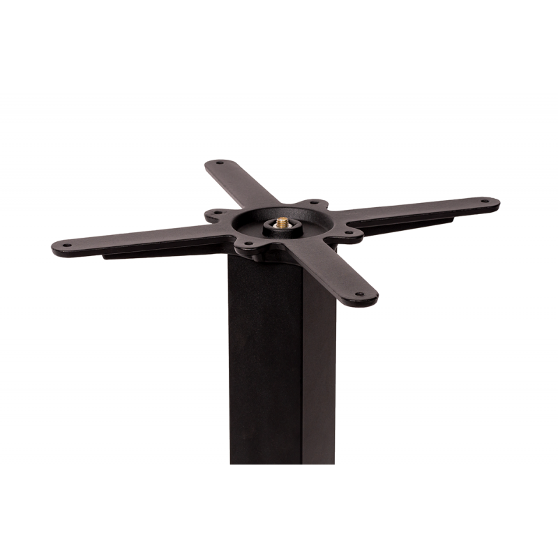 La base de la mesa Alfa XL es una versión más grande del modelo Alfa S. Su estructura está diseñada sobre una sola pata, lo que garantiza una excelente estabilidad. La base está equipada con patas regulables de plástico, lo que evita daños al mover la mesa. Recomendamos combinar esta base con tableros laminados, chapados o de HPL.