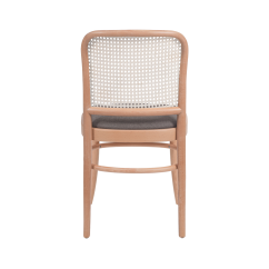 Ideal para restaurantes de estilo clásico o retro, cafeterías con inspiración parisina y lobbies de hotel. La madera natural y el respaldo de ratán aportan ligereza y elegancia, mientras que el asiento tapizado eleva el confort y el nivel de la ambientación. Esta silla ayuda a crear un ambiente acogedor y subraya el carácter profesional del espacio .