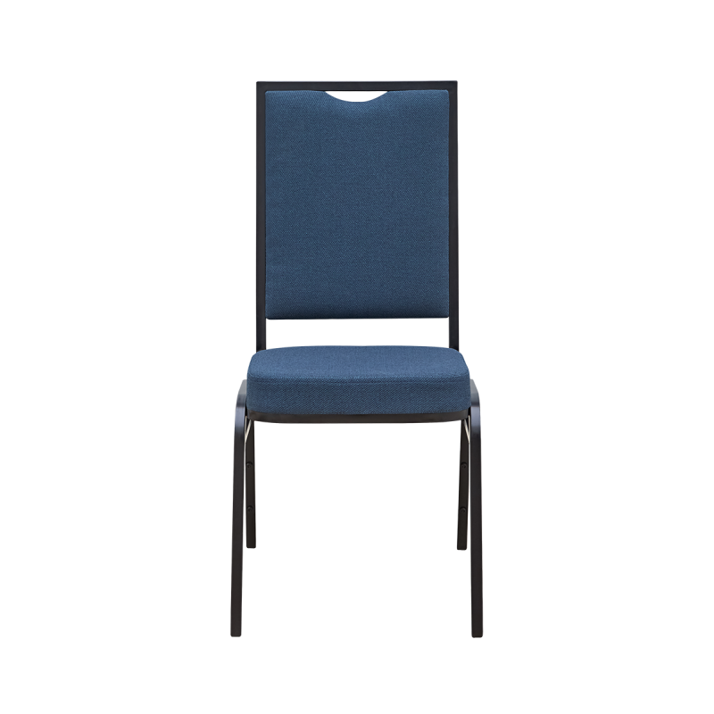 ALICANTE MODERN AM110 se integra perfectamente en espacios HoReCa modernos, donde la estética y la funcionalidad son prioritarias. La tapicería azul marino y el marco negro mate crean un fondo elegante para mesas redondas o rectangulares, por lo que el modelo luce especialmente bien en galas, recepciones y banquetes.