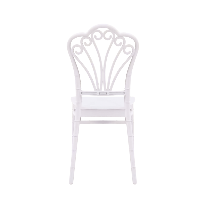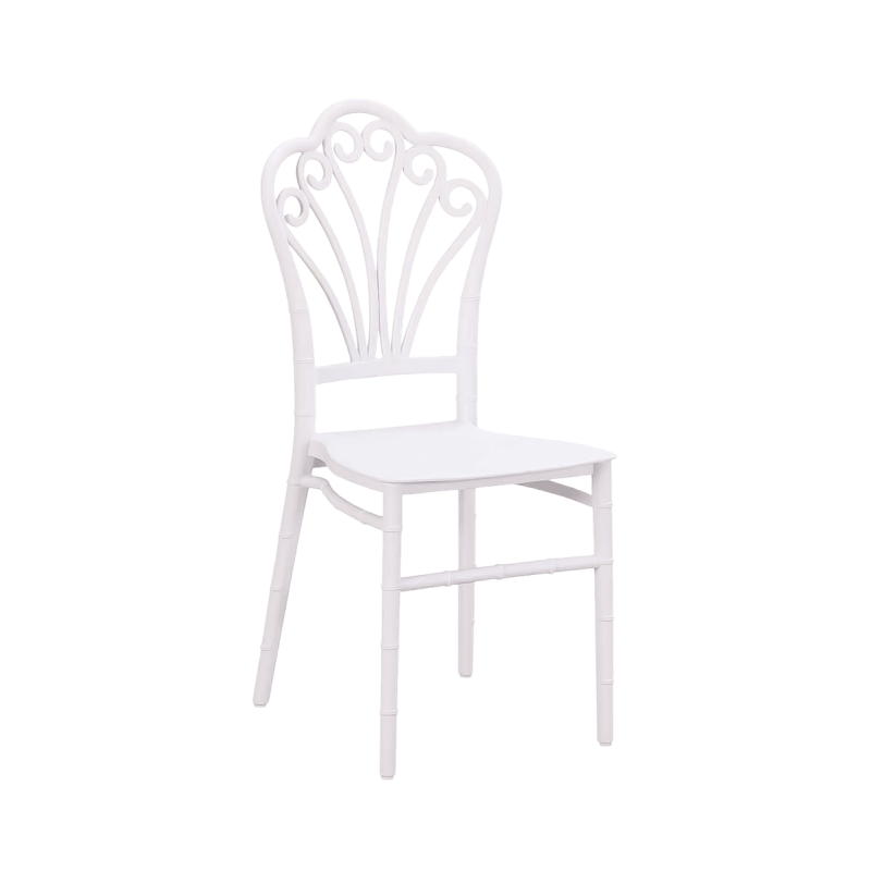 El modelo Victoria Simple está fabricado en polipropileno resistente, lo que hace que la silla destaque tanto por su aspecto como por su funcionalidad. Su superficie es resistente a los arañazos y fácil de mantener limpia, por lo que resulta adecuada tanto para recepciones al aire libre como para ceremonias en interiores. Su sólida construcción y el asiento ergonómico garantizan comodidad incluso durante celebraciones prolongadas.