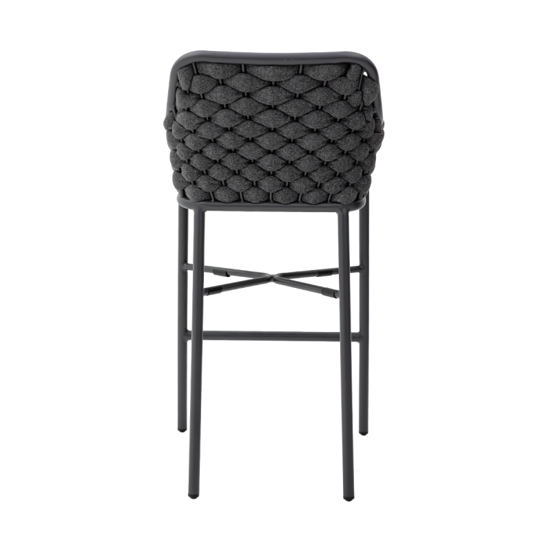 El asiento y el respaldo están fabricados con trenzado reforzado internamente con un entramado de goma. Gracias a ello, la estructura mantiene su forma incluso con un uso intensivo en espacios gastronómicos. El conjunto proporciona un soporte estable y comodidad en la posición elevada típica de bar.