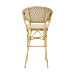 La silla de tecnorratán CAMILLO BAR combina una forma ligera de estilo cafetería con una alta funcionalidad. El respaldo redondeado y los reposabrazos crean un asiento cómodo y envolvente, ideal para mesas altas. El característico trenzado fino aporta elegancia sin recargar visualmente el espacio. Es un modelo que funciona perfectamente como silla para terrazas de bares y como silla de exterior, permitiendo crear composiciones ligeras y coherentes.